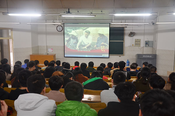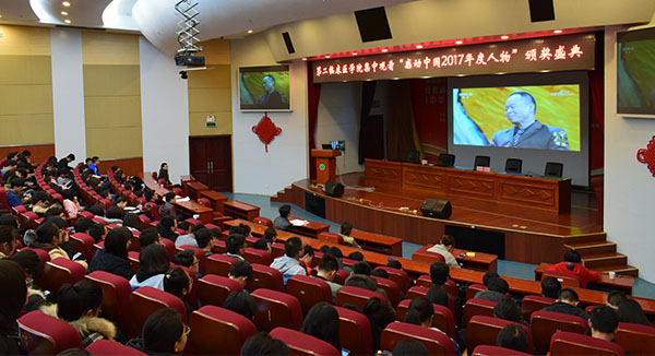 在两个小时的时间里,老师和学生们充分品味了被誉为“中国人的年度精神史诗”《感动中国》。《感动中国2017》既有全军首家装备轰-6K的部队的“先行者”、“探路人”的刘锐,首次推动我国快速移动平台探测技术装备研发,被誉为新时代海归科技报国的楷模黄大年,也有捐出毕生积蓄,设立教育基金的卢永根夫妇,以及靠着锄头、钢钎、铁锤和双手,在绝壁上凿出一条长9400米的“生命渠”的黄大发。今年的《感动中国》还向河北塞罕坝林场的建设者们特别致敬。一个个“感动中国”的人物事迹,一张张至刚至伟的面孔,一段段至真至柔的故事。他们是社会主义核心价值观的集中体现,中华民族几千年的传统美德在他们身上得到了完美的再现和表达。