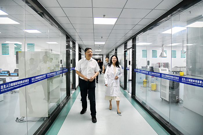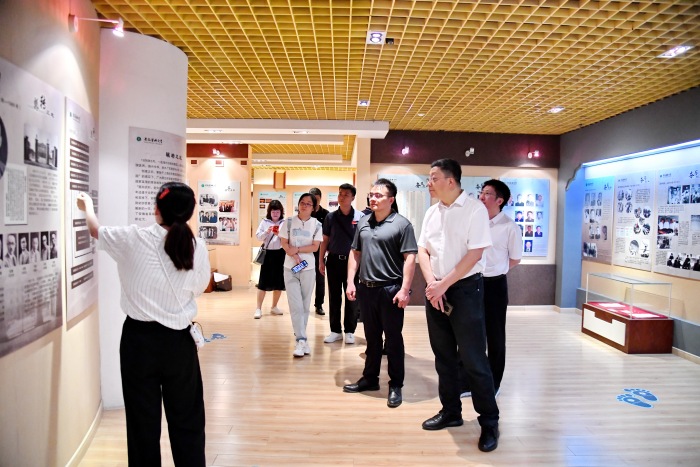张智陪同王振宁一行参观调研我校校史馆、人体科学馆、科研实验平台等场所,并介绍了学校历史沿革、发展现状以及新医科中心(新校区)建设等情况。