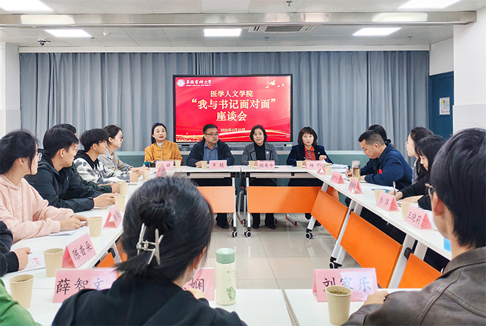 3月25日,医学人文学院召开"我与书记面对面"师生座谈会,校党委常委、学院党委书记顾秀平出席,并与11名学生代表座谈交流。