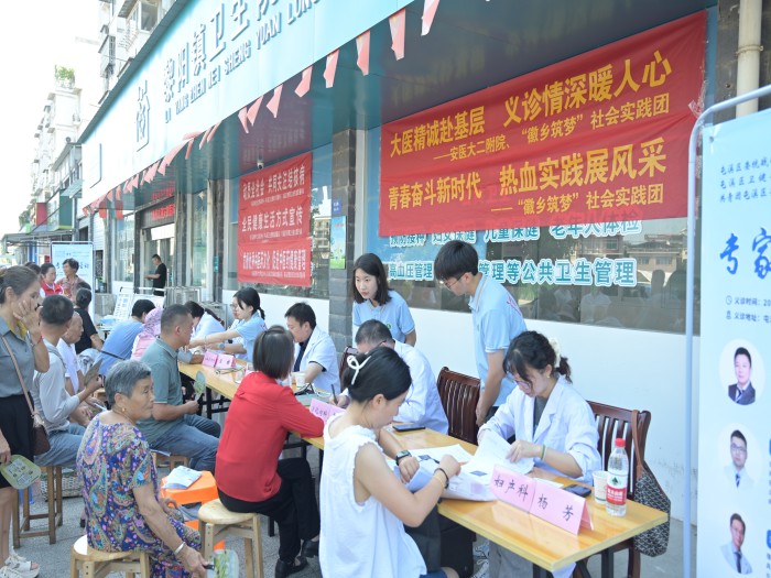 据了解,7月5日至9日,第二临床医学院“徽乡筑梦”实践团在黄山市屯溪区开展健康知识宣讲活动。8日当天,该院发挥院院合一优势,第二附属医院专家团队在实践团成员们的协助下,在黎阳镇卫生院门前开展了义诊服务活动。